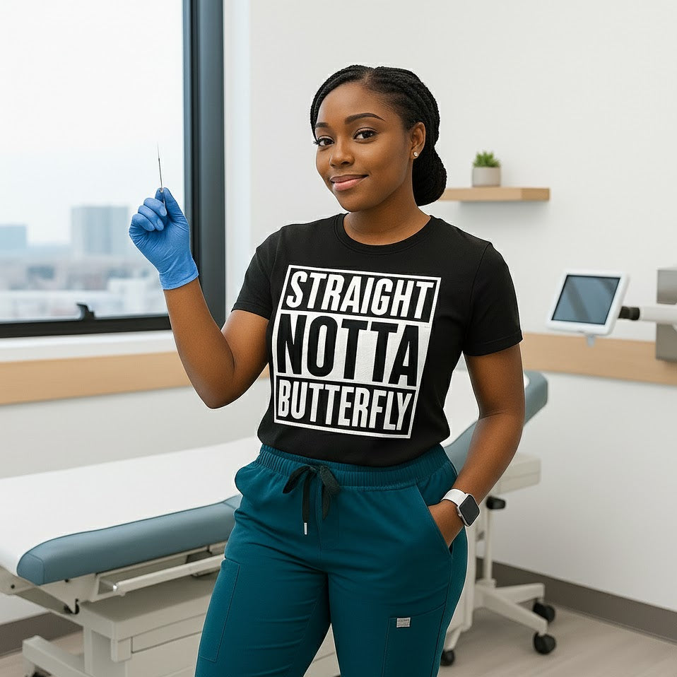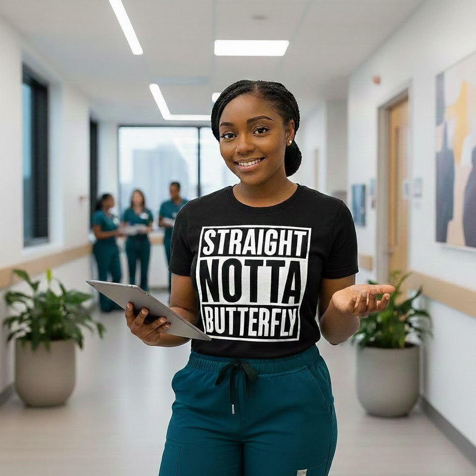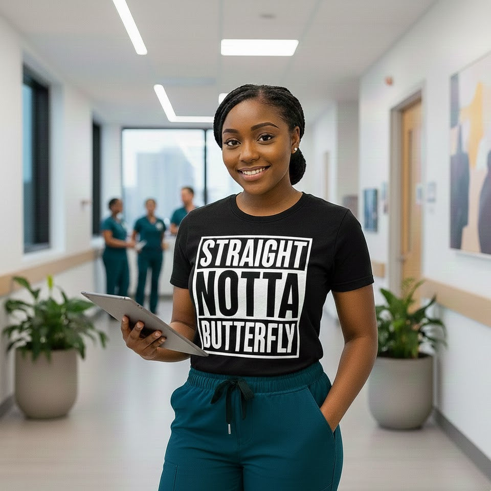 The Straight Notta Butterfly tee is for the ones who’ve always known who they are. No transformation story required. No glow-up arc. Just presence, confidence, and a little edge.